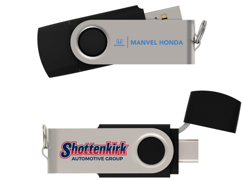 The keyring attachment allows prospective clients to keep their dual USB sticks on hand and prominently displayed for increased brand awareness. You could pair with our .
