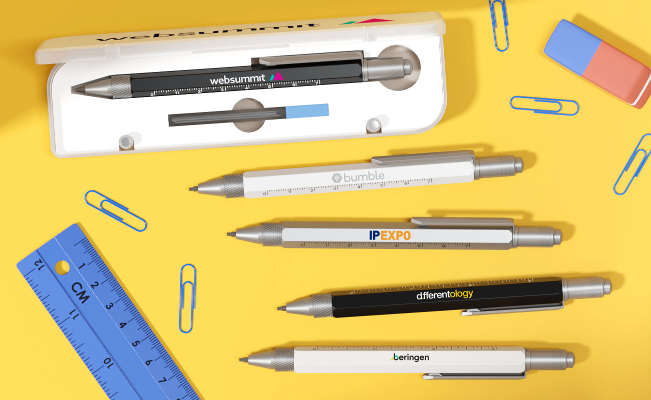 The Architect Mechanical Pencil is designed for accuracy, balance and everyday reliability. With its clean, structured profile and solid aluminium alloy construction, it delivers a refined writing and drawing experience that professionals appreciate. Crafted for comfort and control, the Architect features a streamlined barrel that sits naturally in the hand, making it ideal for detailed work, note-taking and technical sketches. The smooth advance mechanism ensures consistent lead feed, while the integrated clip keeps it secure and within easy reach. The Architect also comes with replacement lead refills. Ask us about branding, express delivery and our latest prices today.